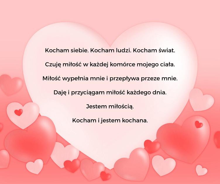 Afirmacje miłości są energią, która wysyłasz w świat, aby mogła ona do Ciebie powrócić z jeszcze większą siłą Przygotowałam dla Ciebie kilka inspiracji:
